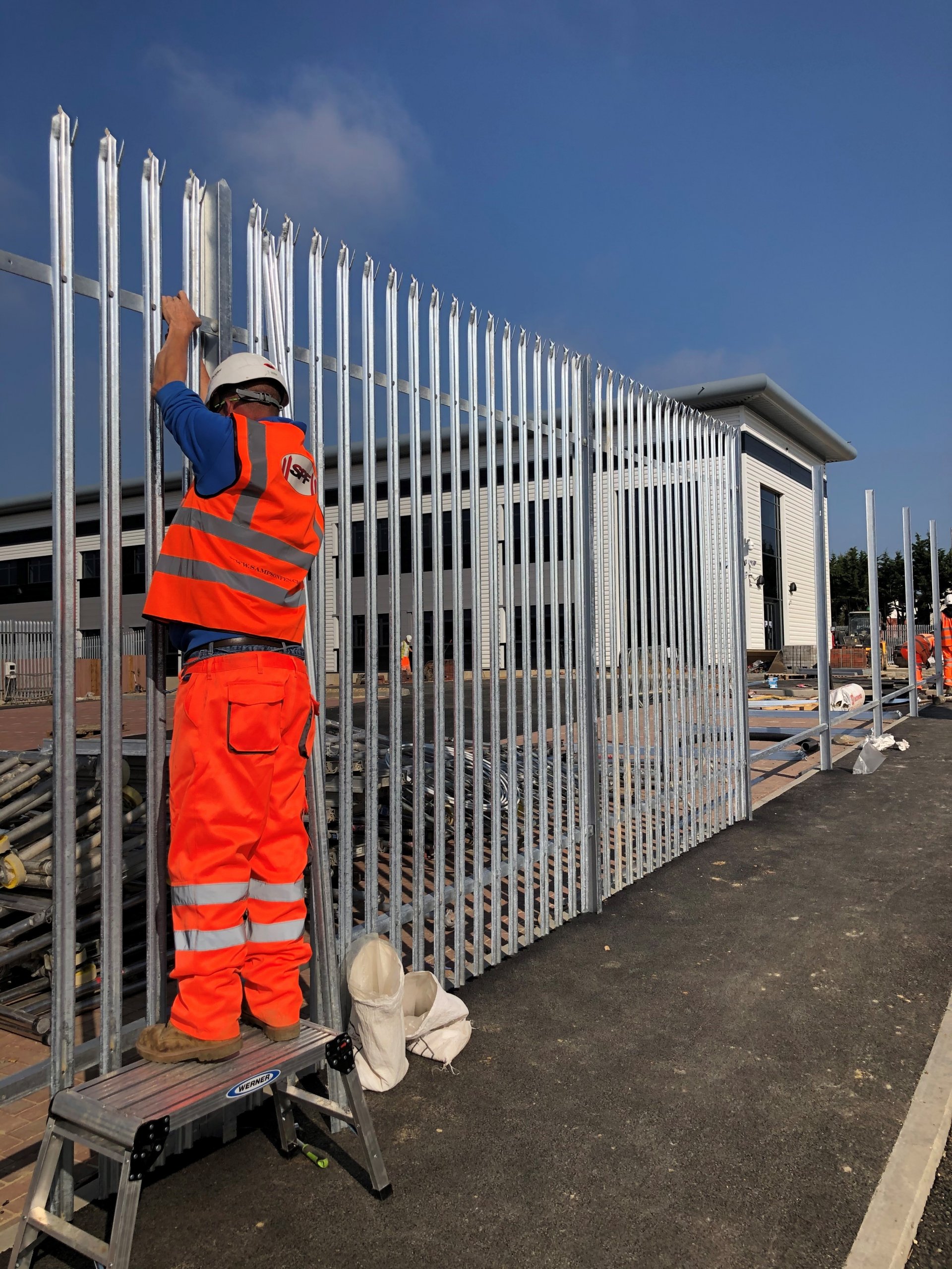 Steel Palisade fencing is considered the most economically effective way to secure any industrial or commercial premises. Metal palisade fencing is delivered to site ‘piece meal’ and is installed on-site. One major advantage of steel palisade is that it can follow the ground up to a 12% gradient so more adverse ground conditions are accommodated without the need for stepping.